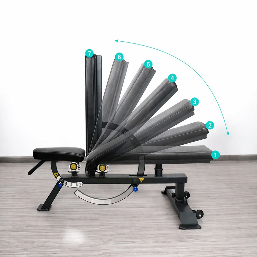 With its adjustable design, it allows you to customize your workout to suit different exercises and training needs. With six backrest positions and four seat positions, you can perform strength exercises at different angles for a more effective and varied workout.