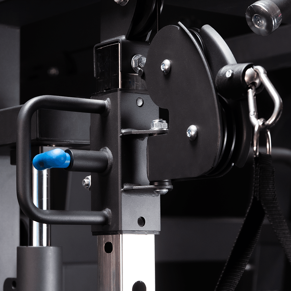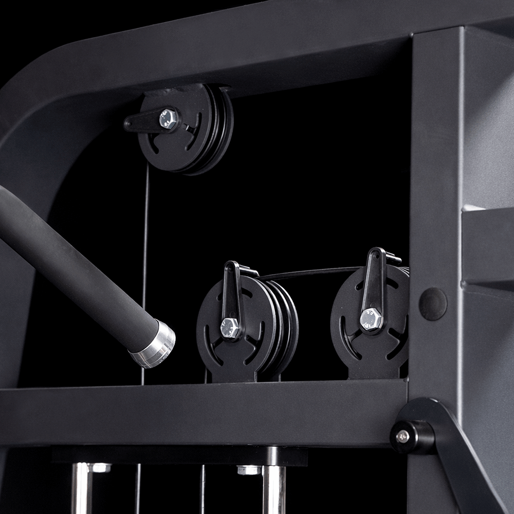 Integreert centrale hoge en lage katrol met een verhouding van 1:1, naast zijkatrollen 2:1, wat een nauwkeuriger en efficiënter systeem biedt bij elke herhaling. Deze combinatie maakt directe belastingoverdracht op de centrale katrol mogelijk, ideaal voor intensieve en progressieve trainingen.